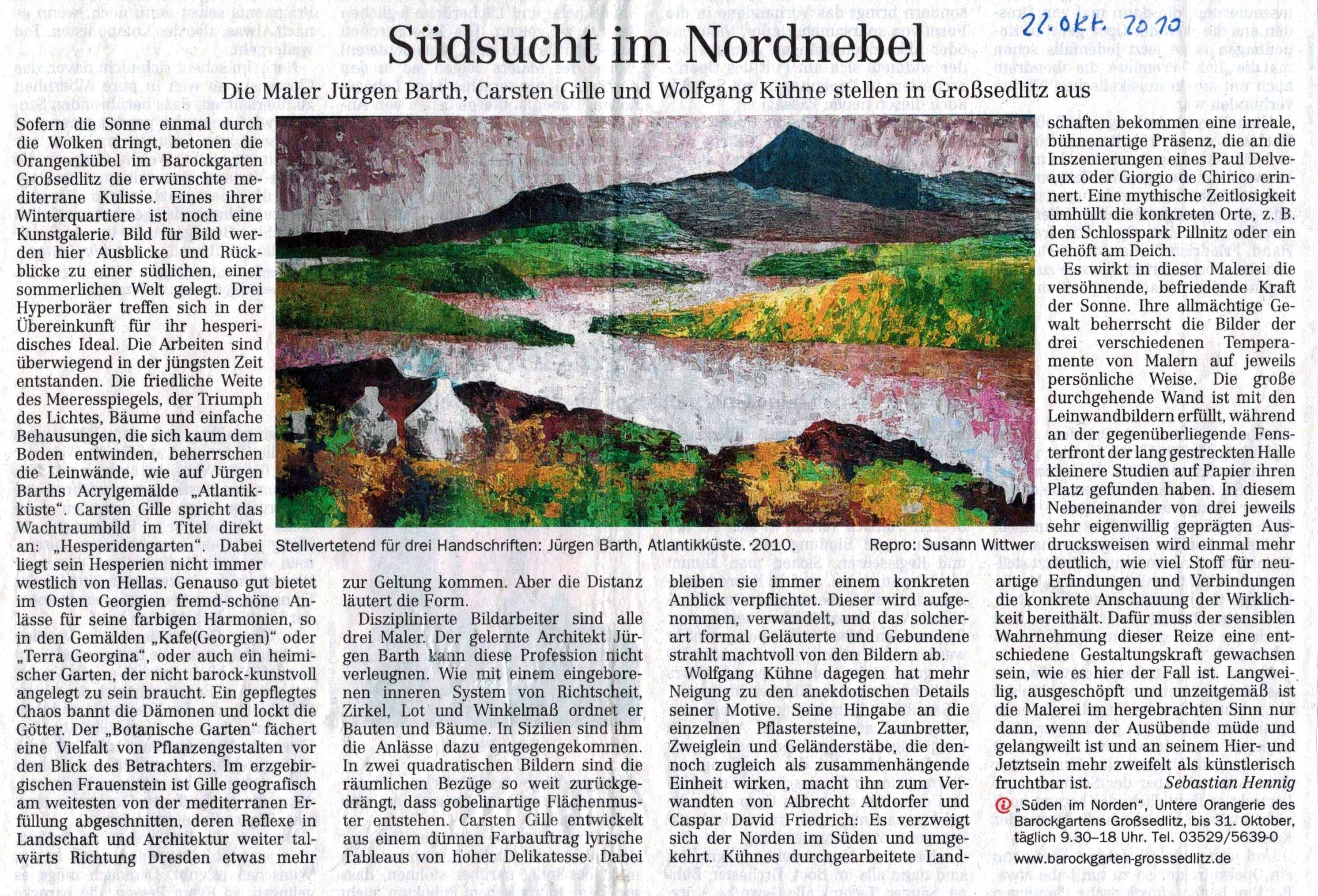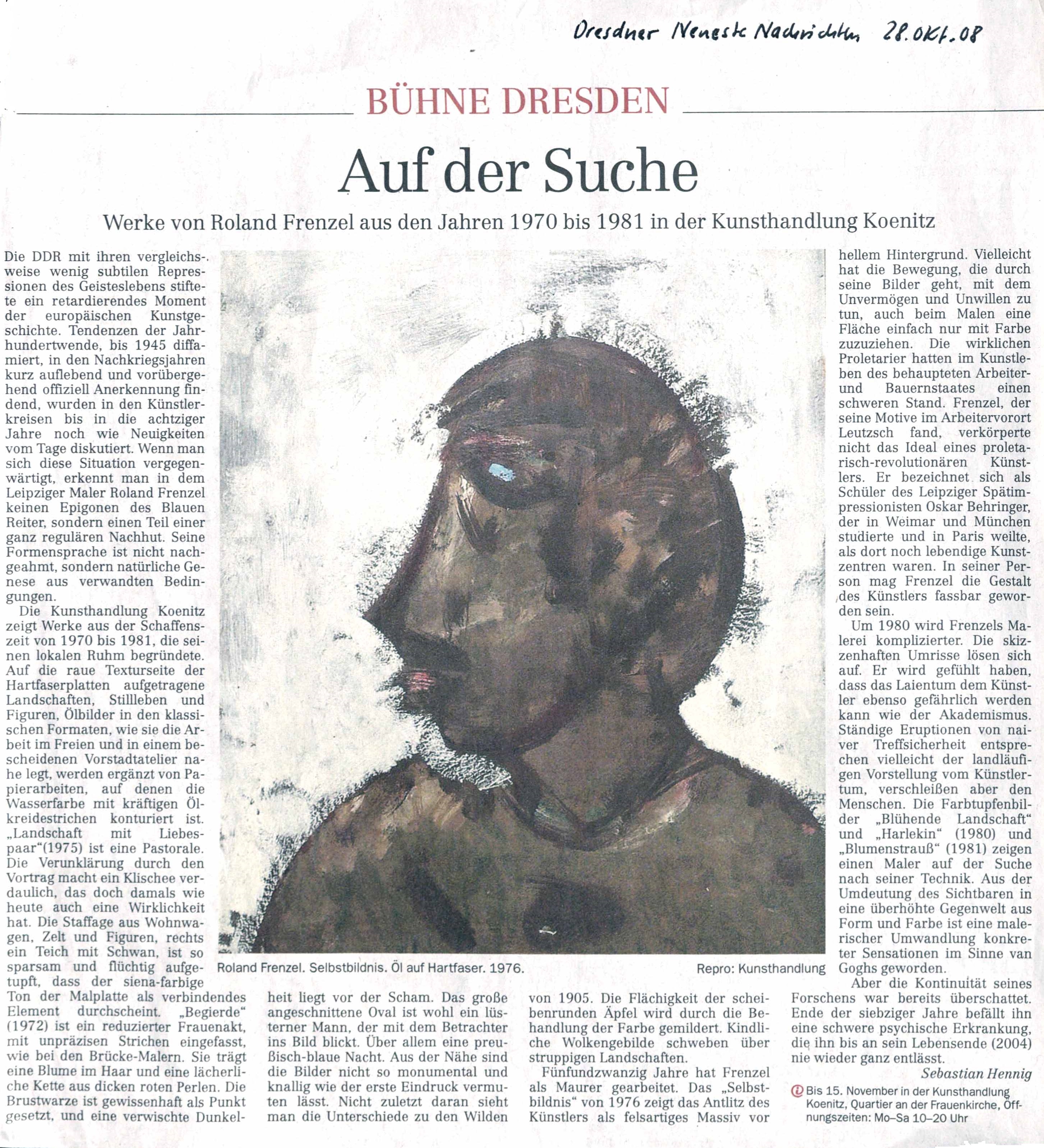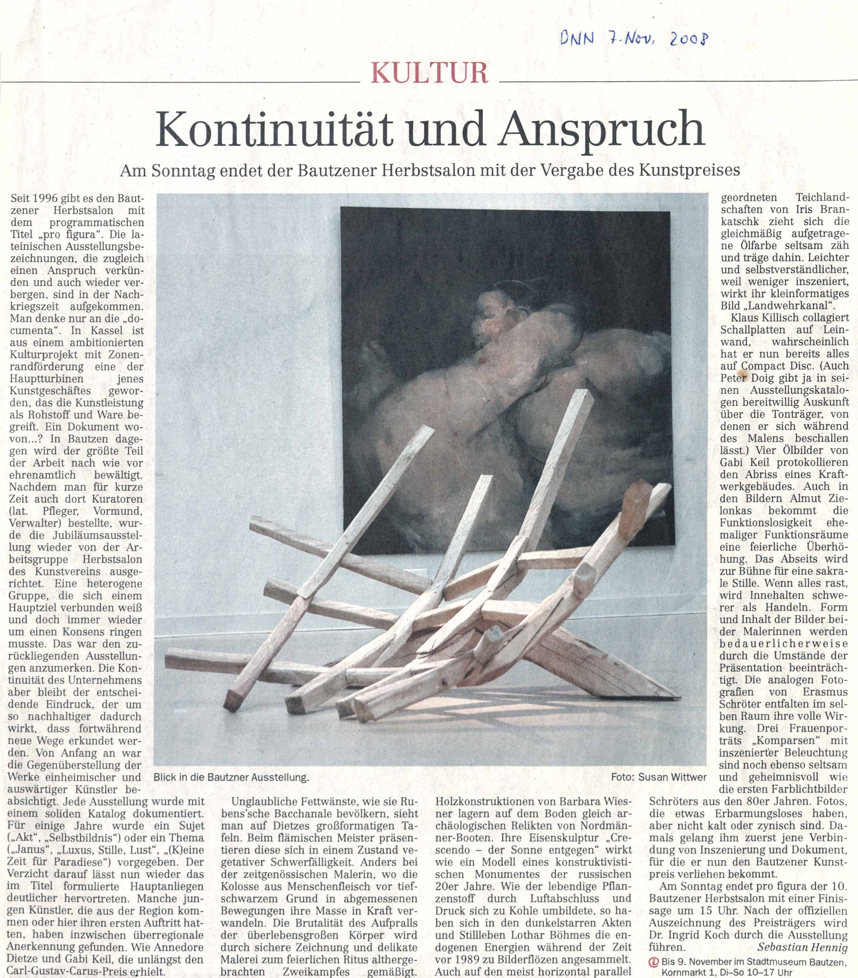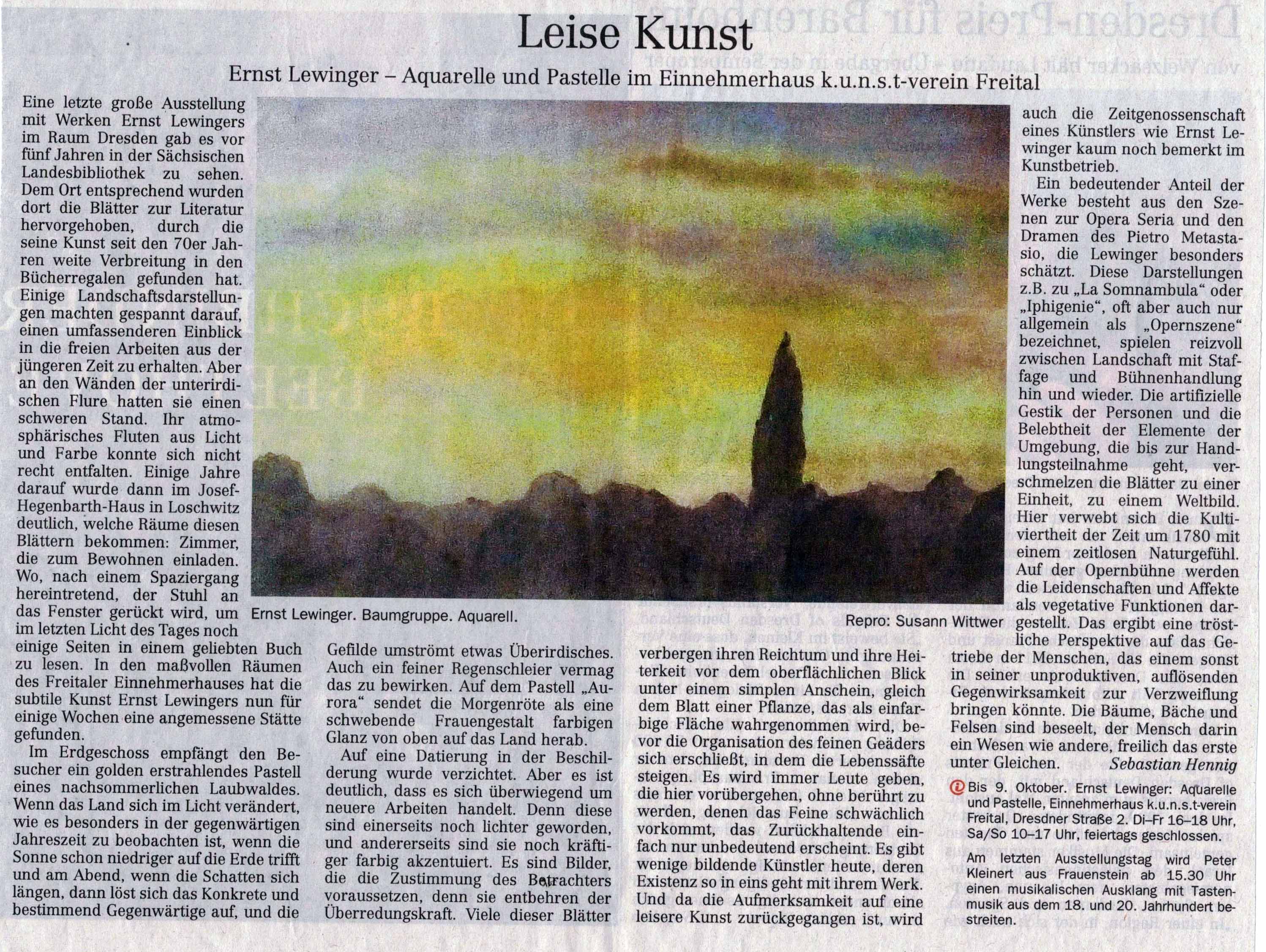 Ausstellung im Kunstverein zeigt Landschaftsbilder. Sächsische Zeitung. 18./19. Oktober 2008