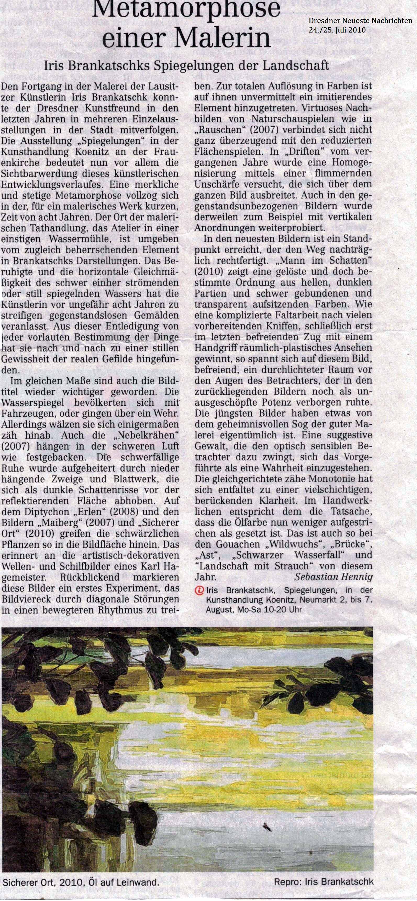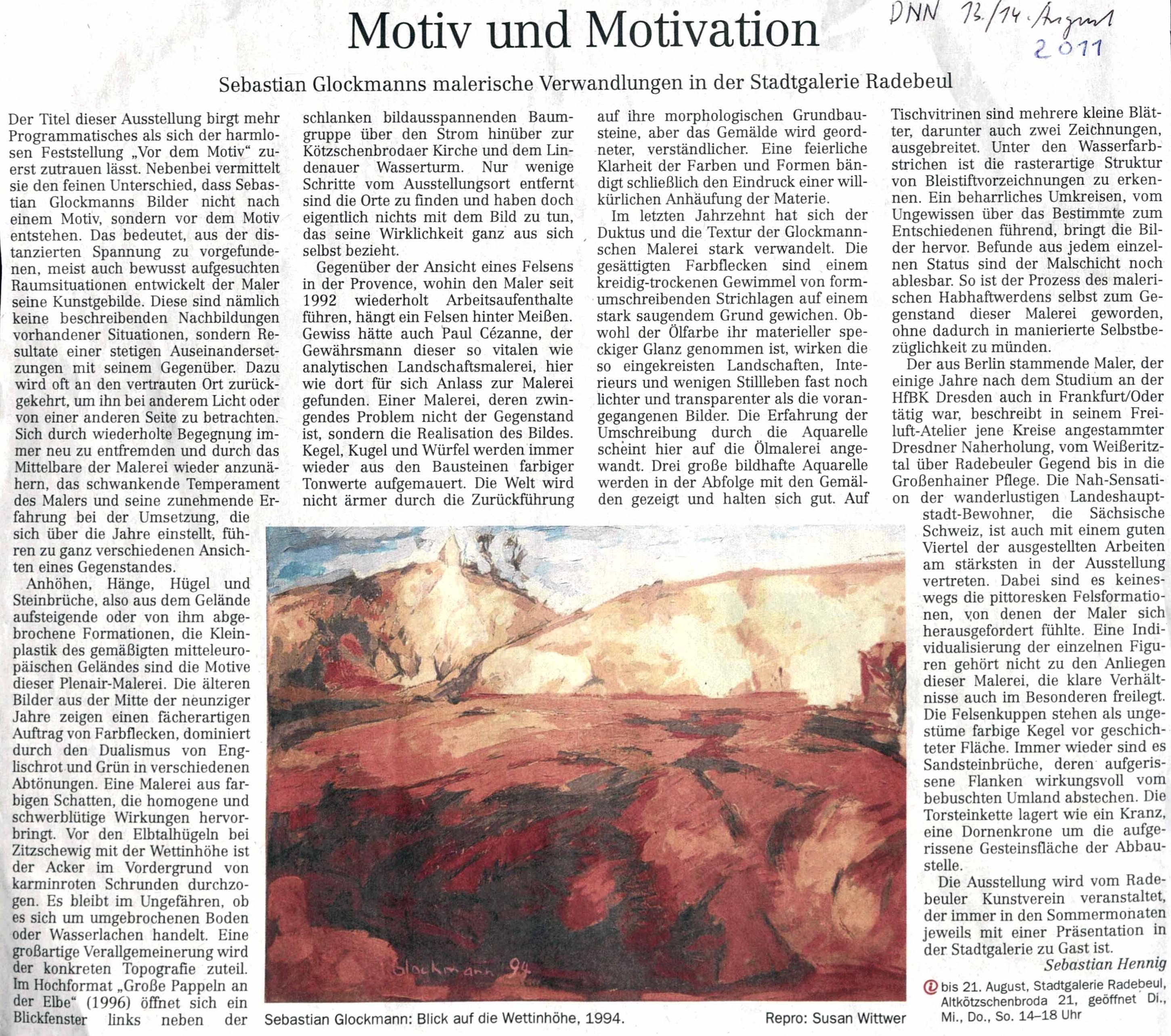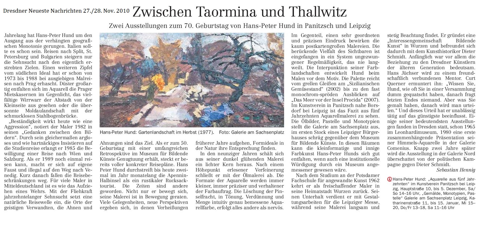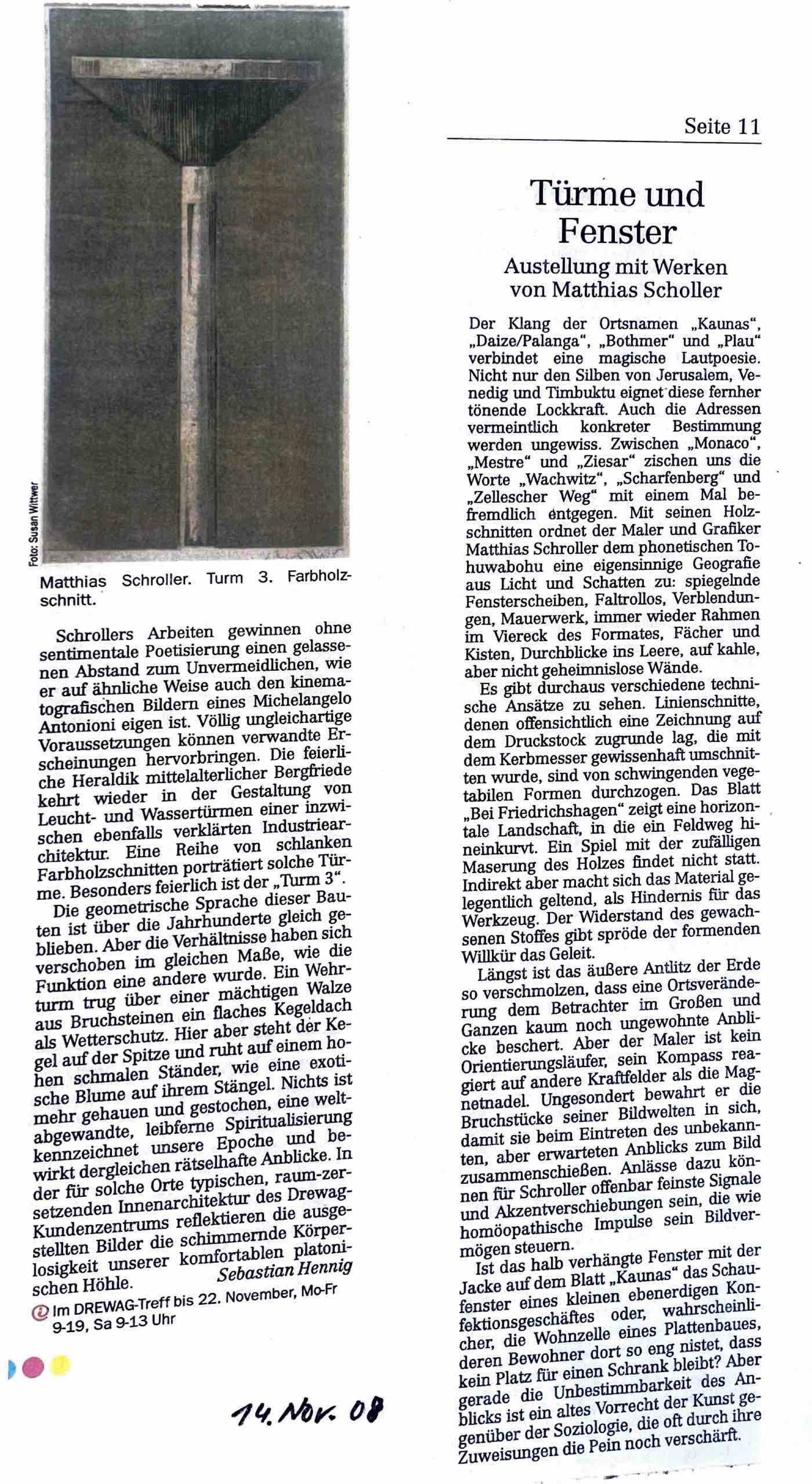 Ausstellung im Kunstverein zeigt Landschaftsbilder. Sächsische Zeitung. 18./19. Oktober 2008