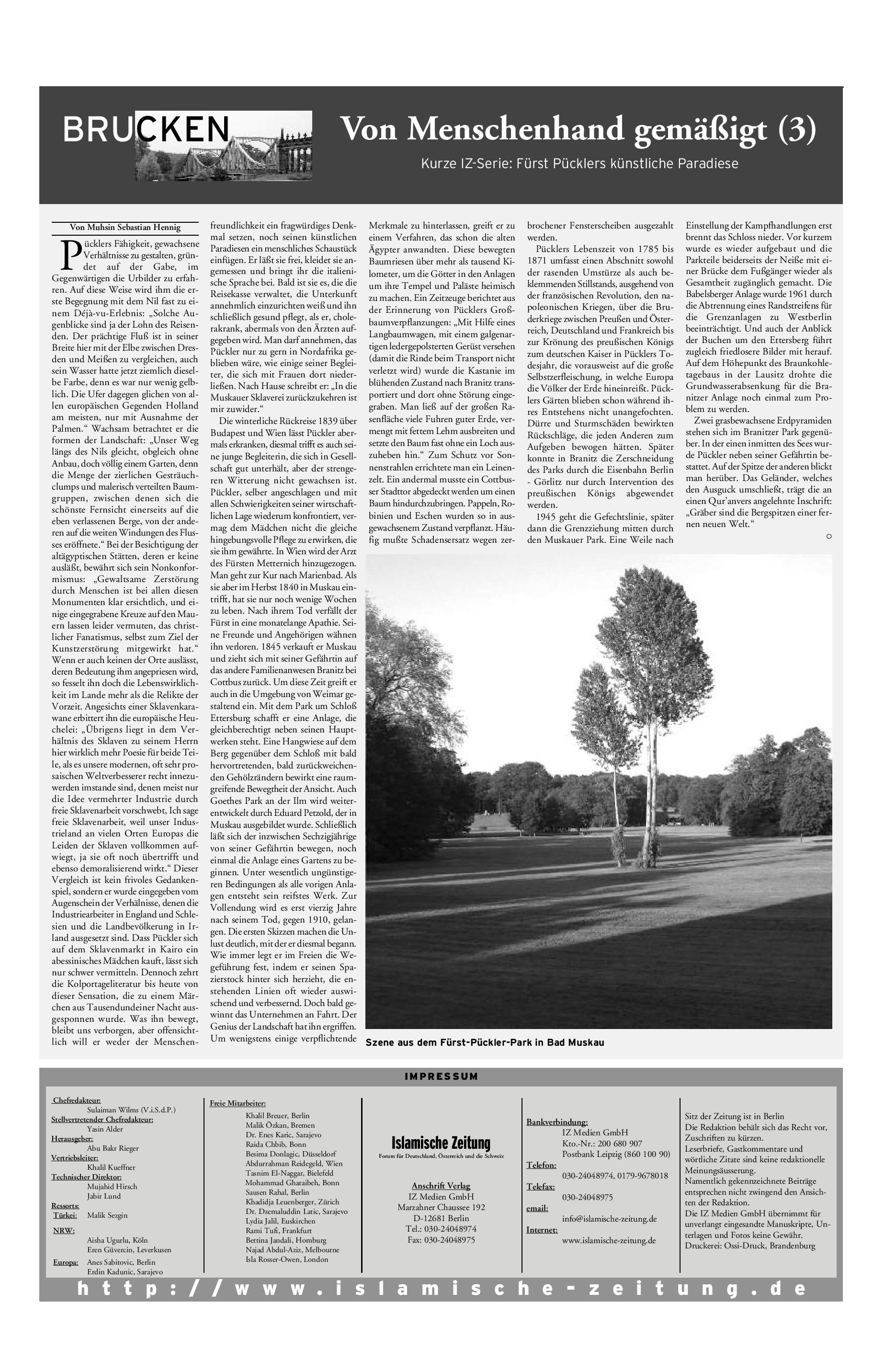 gemäßigt (1) Fürst Pücklers künstliche Paradiese. Islamische Zeitung.