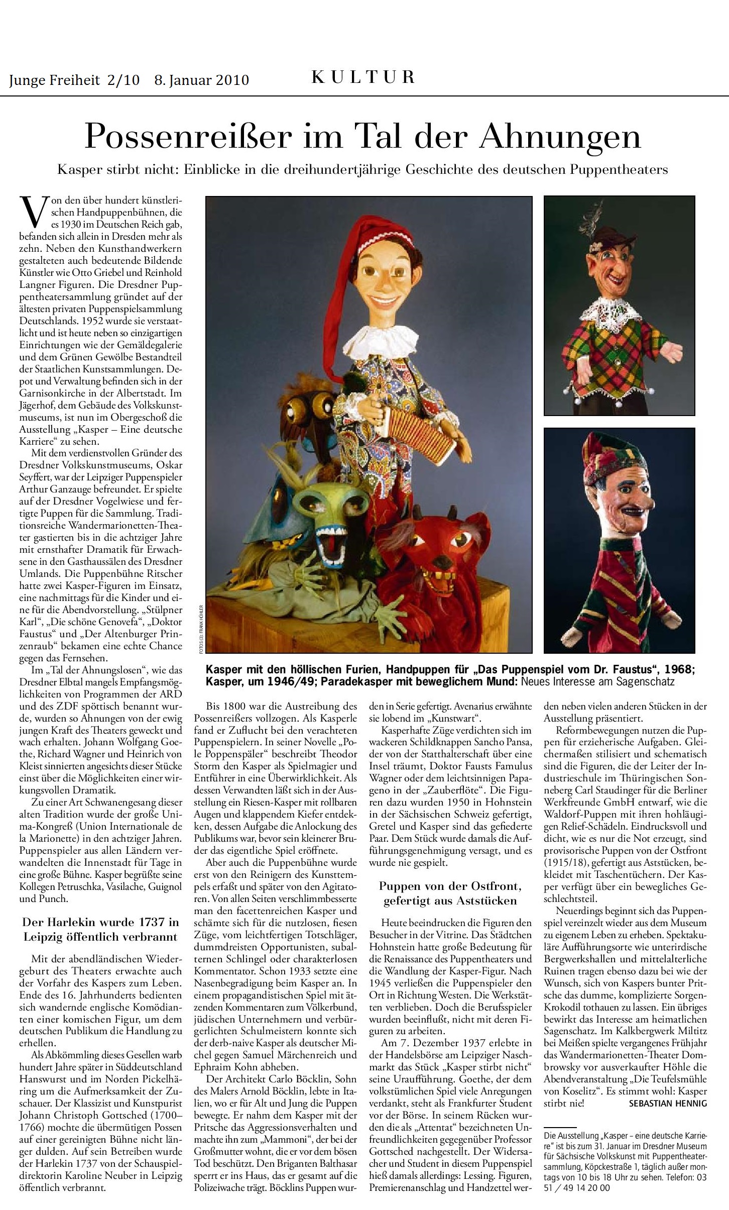 Dombrowskys führen neues Marionettenstück in Miltitz auf. Sächsische Zeitung, 30. März 2010