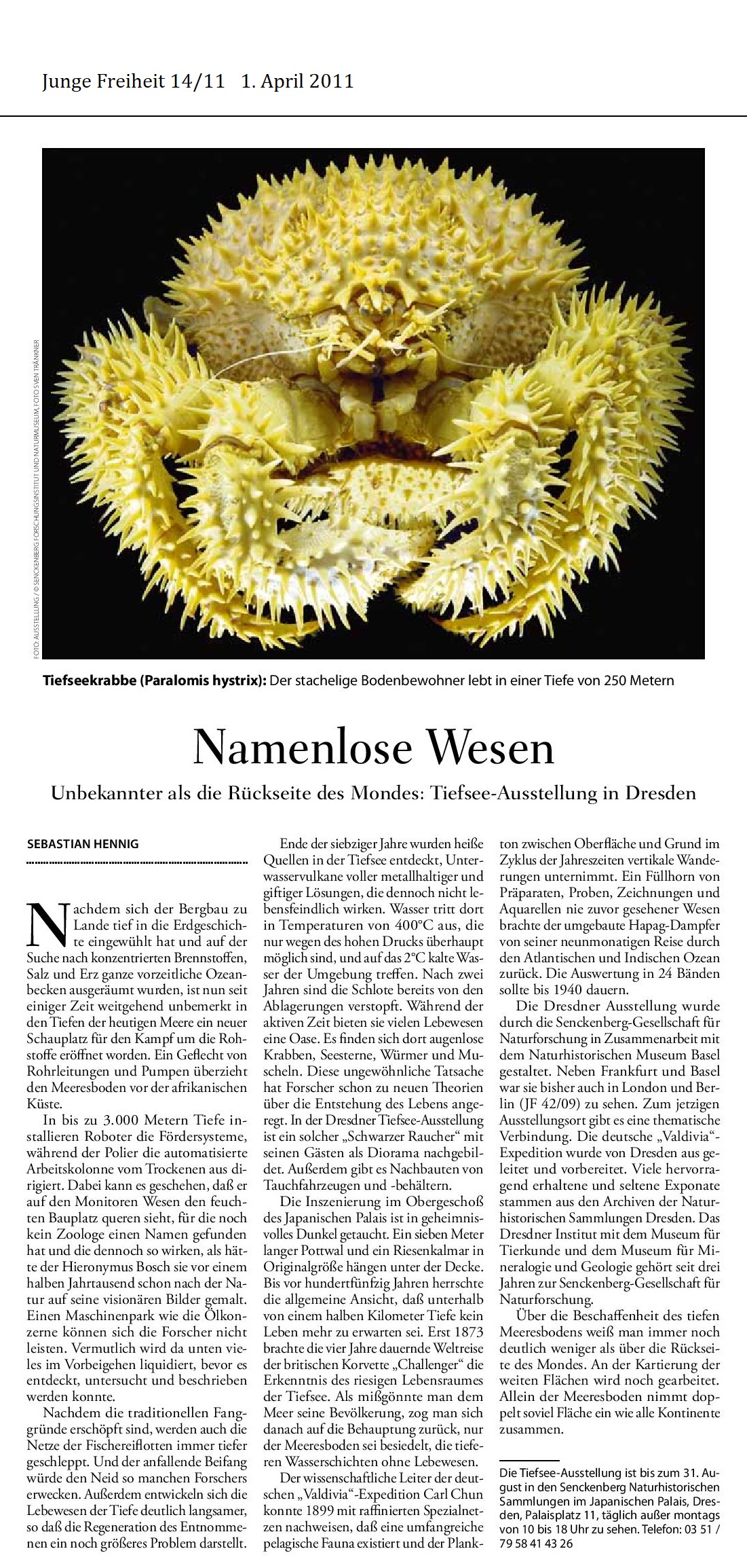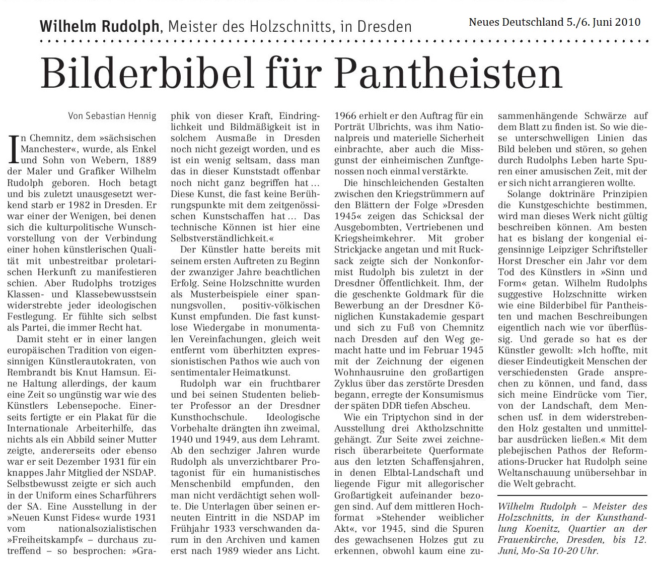 ist eine Schau im Bennohaus gewidmet. Sächsische Zeitung. 14./15. März