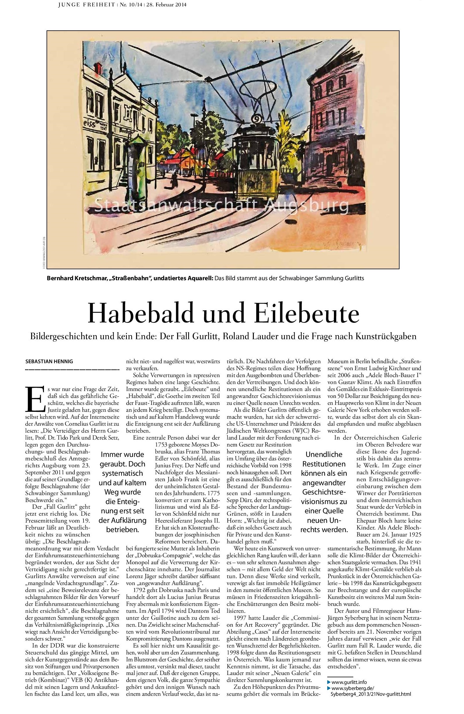 I. Veröffentlichungen in Zeitungen: