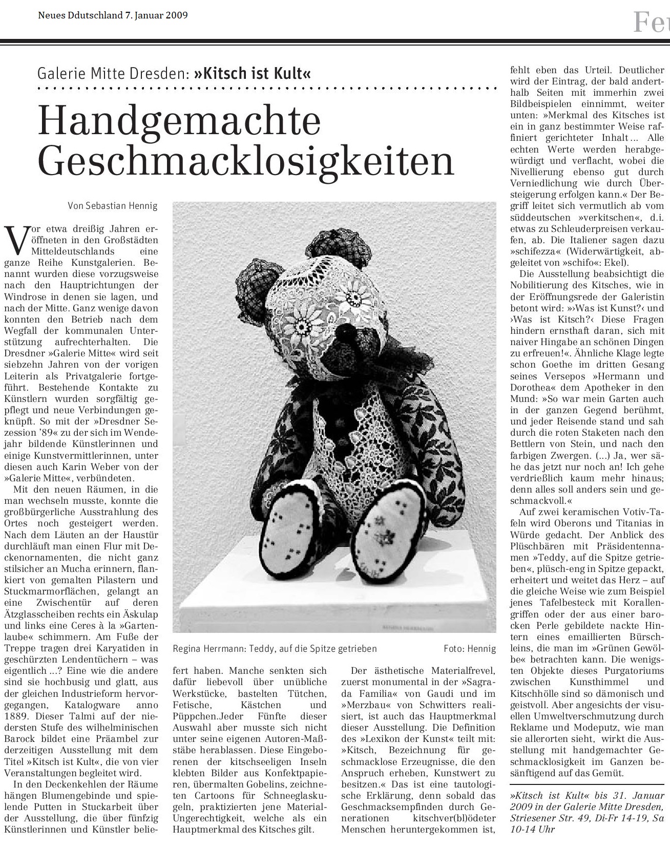 der Vororte von Dresden. Neues Deutschland, 19. Januar 2010