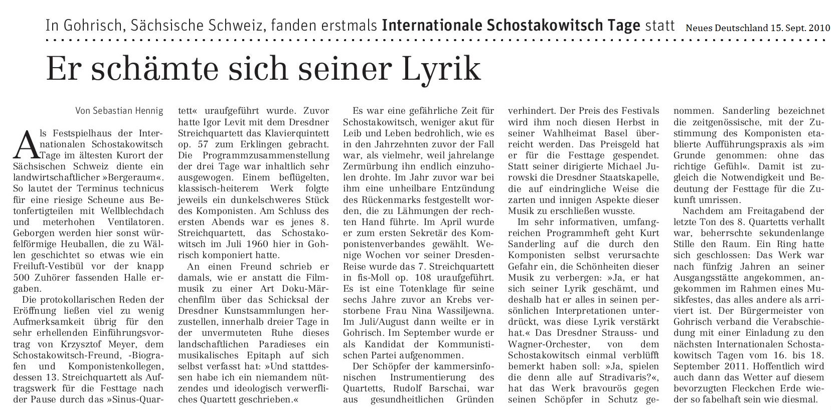 Sächsische Zeitung, 12. Oktober 2009.
