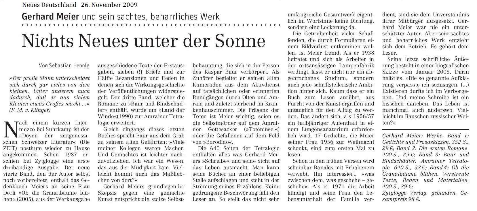 Zeitung, 18. September 2009